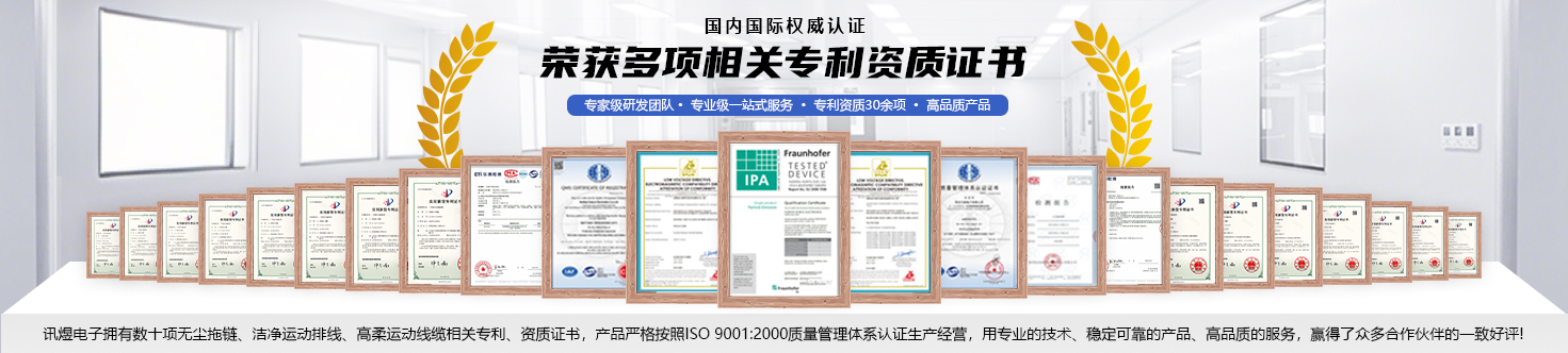 蘇州訊煜電子有限公司深耕線纜與線束領域二十余年,專注于無塵拖鏈、潔凈高柔運動排線、真空線纜、潔凈線纜、高柔運動線纜及智能線束的研發與生產,提供從設計開發到量產交付的全流程服務。公司產品通過ISO 9001:2000質量管理體系認證,并符合RoHS、REACH、CE等國際標準,核心性能指標如潔凈度(IPA Class1)、折彎壽命(達數千萬次)及信號穩定性均達到了很高的標準。